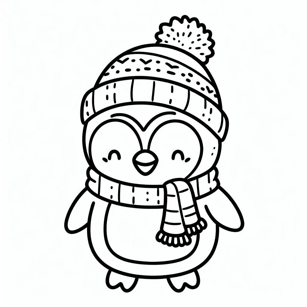 דף צביעה להדפסה או להורדה חינם של פינגווין עם כובע