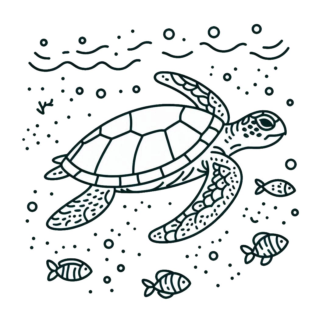 ציור של צב ים שוחה לצביעה, איור של צב ים שוחה להדפסה לצביעה לילדים