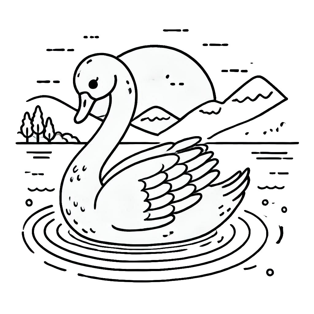 ציור של ברבור יפה לצביעה, איור של ברבור יפה להדפסה לצביעה לילדים