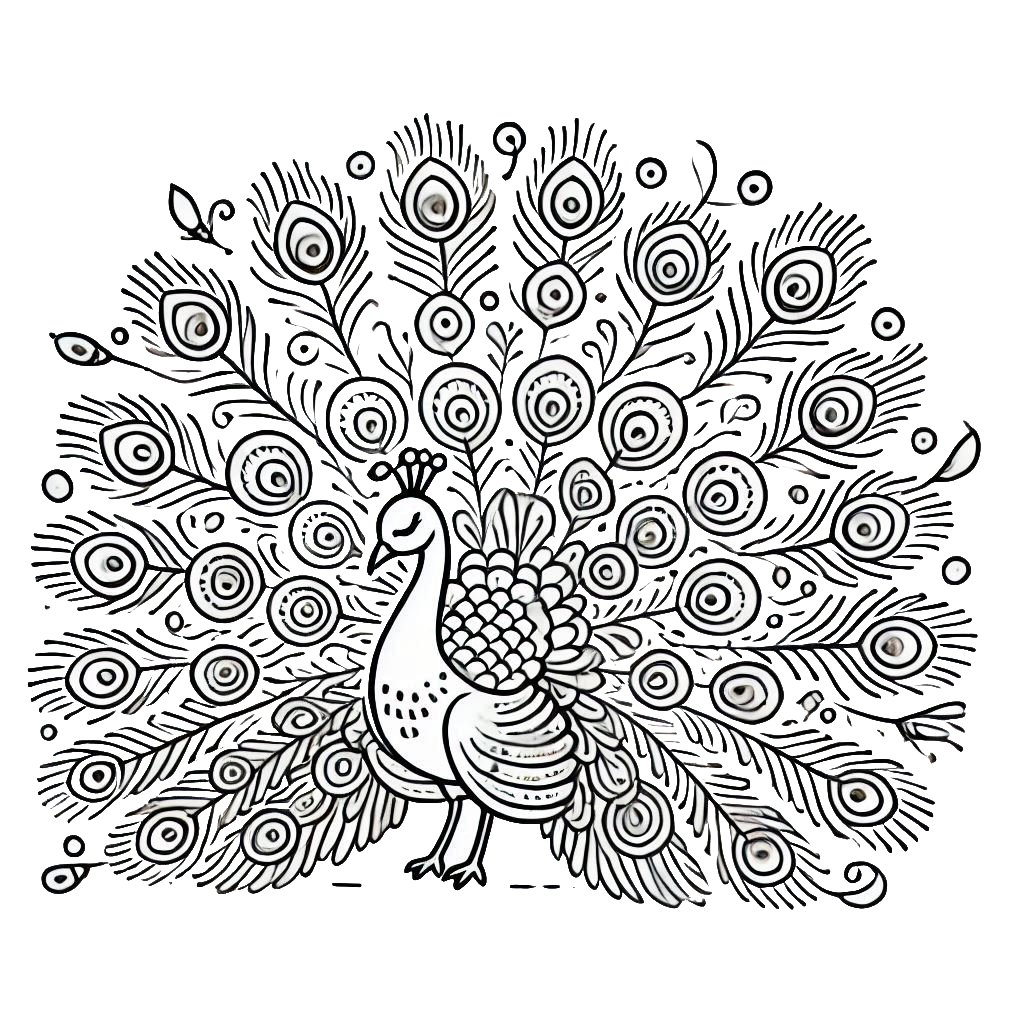 ציור של טווס פותח נוצות לצביעה, איור של טווס פותח נוצות להדפסה לצביעה לילדים