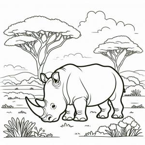 דף צביעה של קרנף בסוואנה דף צביעה של קרנף בסוואנה