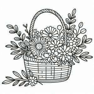 סלסלה עם פרחים ציור לצביעה סלסלה עם פרחים ציור לצביעה