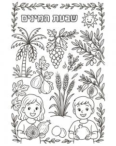 דפי צביעה של שבעת המינים, מתן תורה, ציורים לחג שבועות להדפסה.