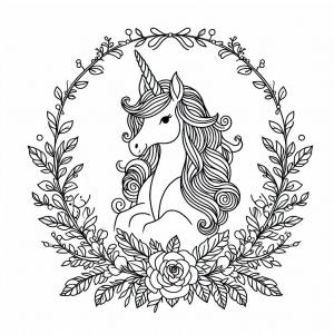 חד קרן בתוך מסגרת פרחים לצביעה חד קרן בתוך מסגרת פרחים לצביעה