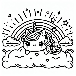 חד קרן מצויר עם קשת בענן לצביעה חד קרן מצויר עם קשת בענן לצביעה