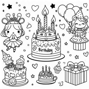 דפי צביעה של עוגות יום הולדת, דפי צביעה של בלונים.