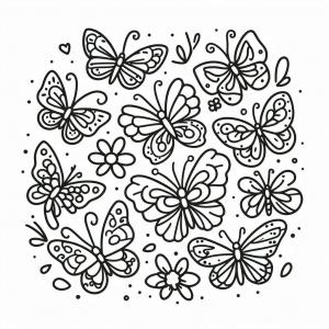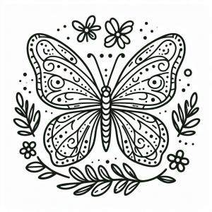 דפי צביעה עם פרפרים ופרחים להדפסה לילדים.