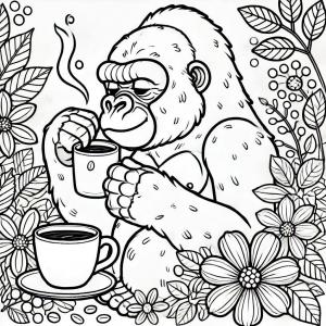 גורילה שותה קפה לצביעה גורילה שותה קפה לצביעה