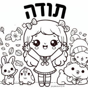 דף צביעה ילדה עם תודה דף צביעה ילדה עם תודה