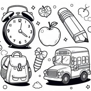 דפי צביעה לבית הספר להדפסה, ציורים לצביעה בנושא בית ספר להדפסה בחינם, עם ספרים, עפרונות, מחדדים, אוטובוס ועוד מלא דברים חמודים שקשורים לבית בספר להדפסה