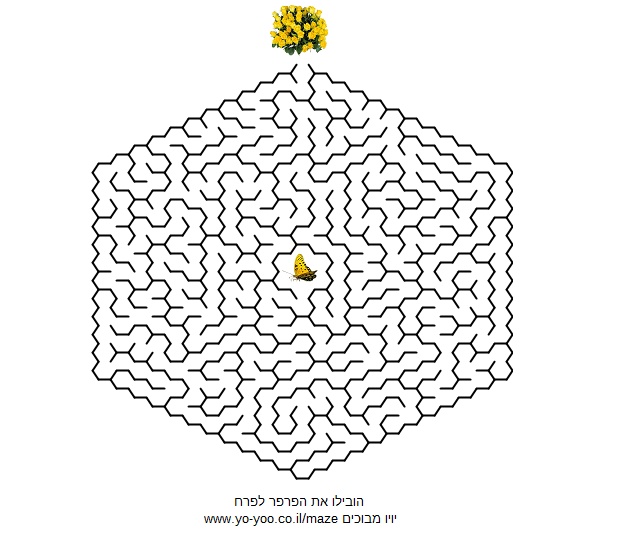 1. לחצו על כפתור "הדפסת מבוך" - הדפיסו ופתרו את המבוך 2.מבוך להדפסה במחשב - לחצו העתק על המבוך והדביקו בתוכנת בוורד או תוכנה אחרת במחשב 3.מבוך להורדה - ניתן להוריד את המבוך למחשב ולהדפיס 4. הורידו למחשב, פתחו באמצעות תוכנת צייר ופתרו |