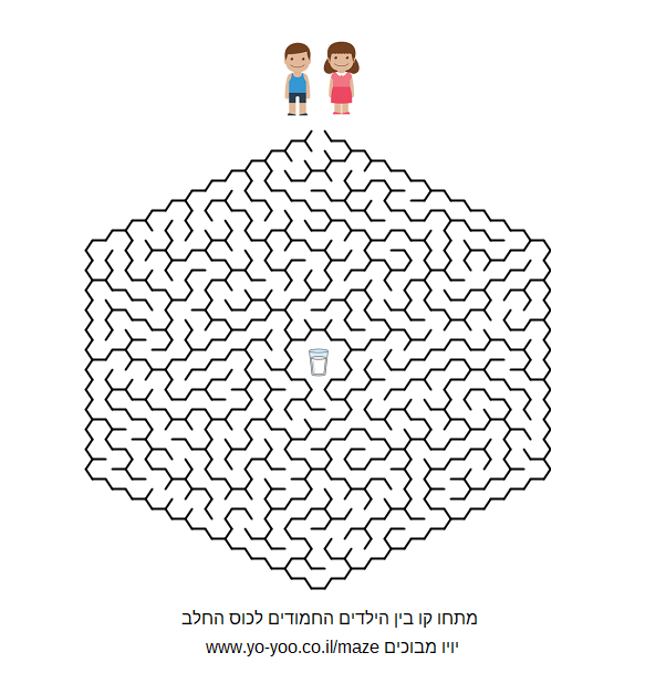1. לחצו על כפתור "הדפסת מבוך" - הדפיסו ופתרו את המבוך 2.מבוך להדפסה במחשב - לחצו העתק על המבוך והדביקו בתוכנת בוורד או תוכנה אחרת במחשב 3.מבוך להורדה - ניתן להוריד את המבוך למחשב ולהדפיס 4. הורידו למחשב, פתחו באמצעות תוכנת צייר ופתרו |